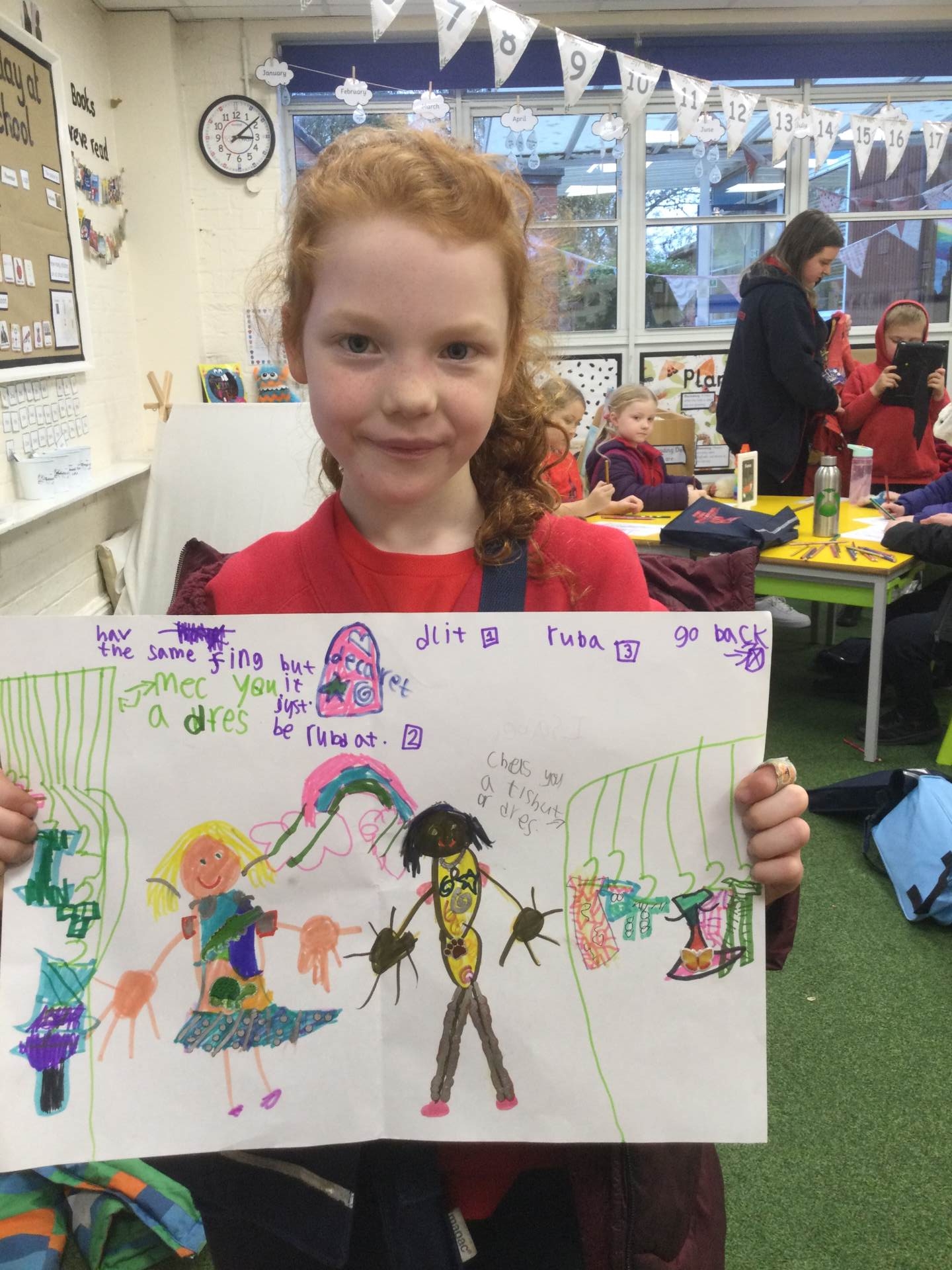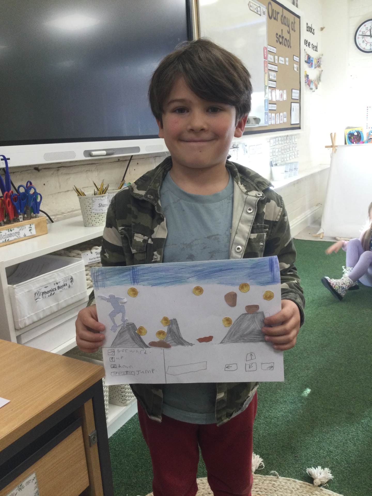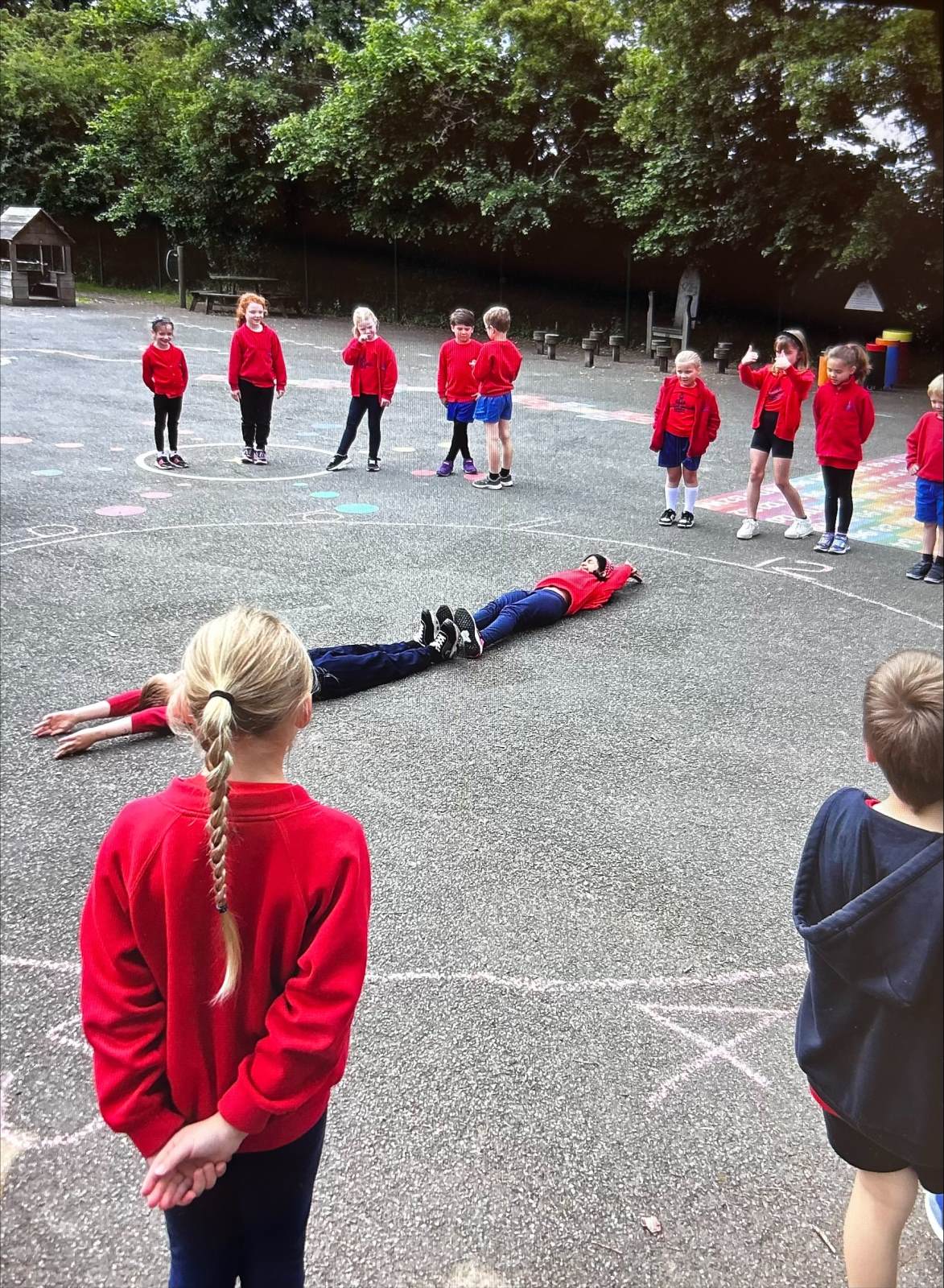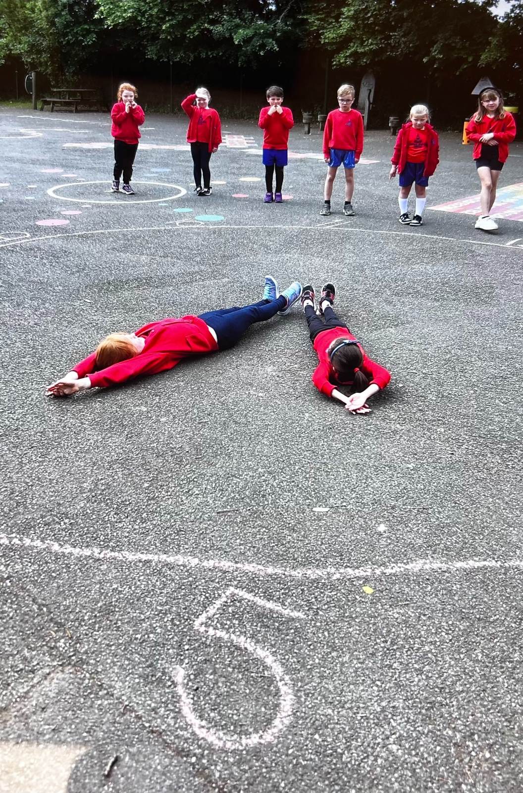 We had some extra time this morning to embed our Maths learning surrounding time, we went outside onto the playground and made our own clock with chalk! The children were the minute and hour hands and took in turns showing the times that were set for them, we had some great fun!